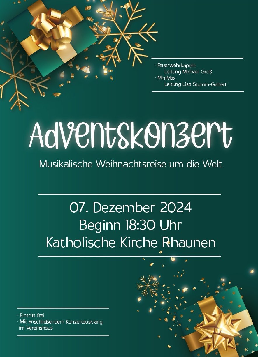Rhaunen Am 07.12.2024 war es wieder soweit: Vorsitzender Georg Dräger durfte wieder zum jährlichen, von vielen Musikfreunden schon freudig erwarteten, Adventskonzert der Feuerwehrkapelle begrüßen und diesmal zu einer „Musikalischen Weihnachtsreise um die Welt“ einladen.