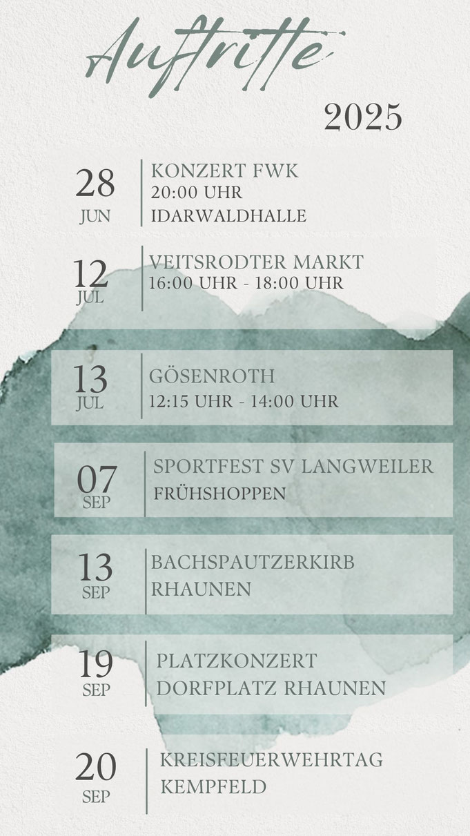 Die Probe findet Freitags um 19:30Uhr im Vereinshaus (neben kath. Kirche) in Rhaunen statt.